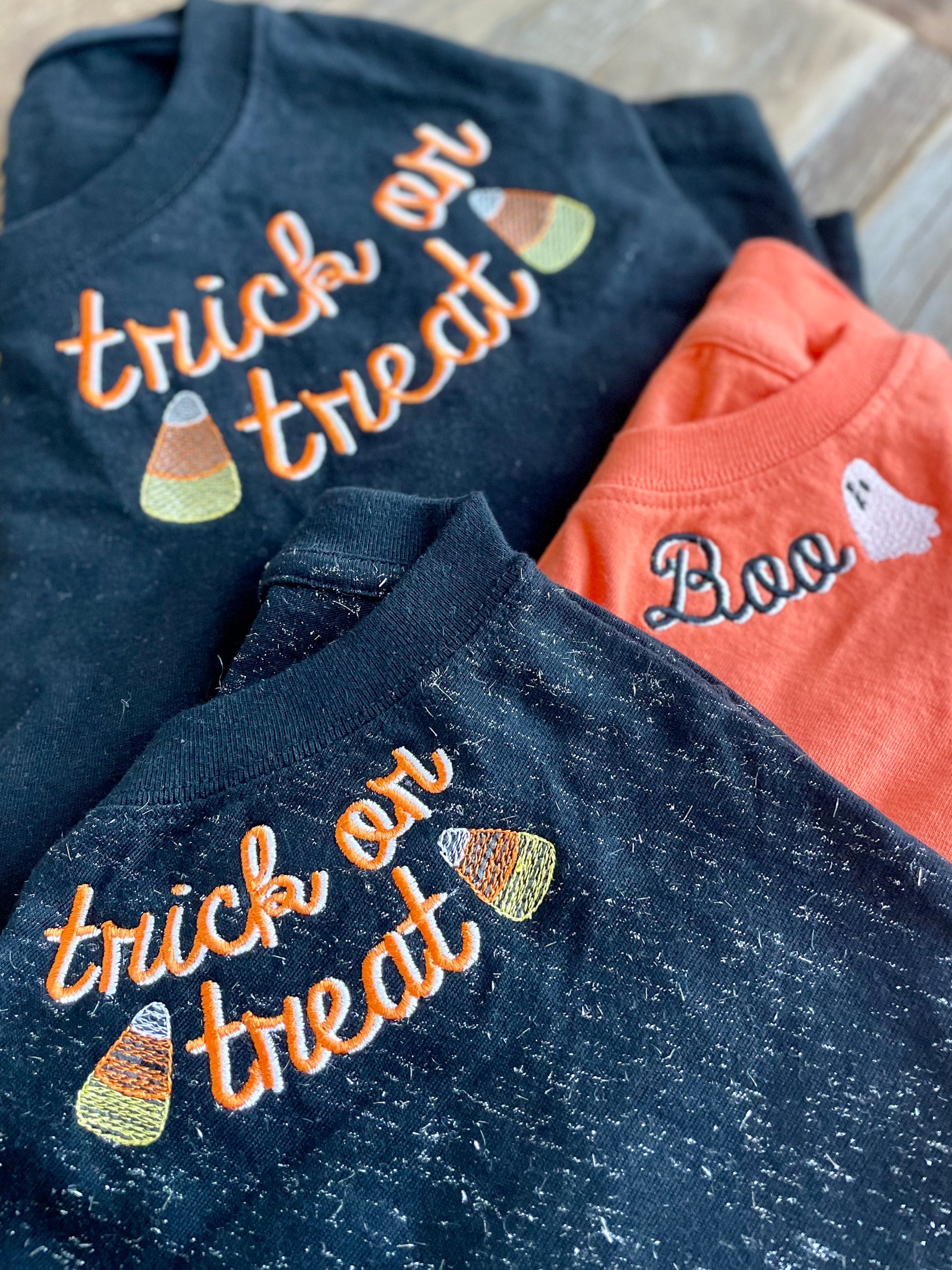 Our all new stadium shirt just in time for Halloween! This long-sleeved oversized fit shirt with 'Boo' or 'Trick or Treat' on the neckline. Available for a limited time!
